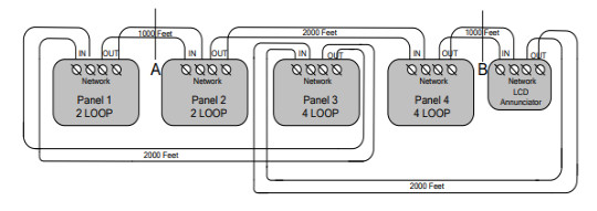Để kết nối giữa các tủ trung tâm báo cháy lại với nhau sơ đồ đi dây theo Class A