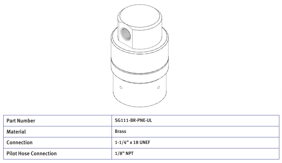 | Hạng mục | SG-110-XX-LAT-UL (Electromagnetic Actuator -Van điện từ đầu bình UL/FM) | SG110-XX-MNL-UL (Manual Actuator – Cần gạt xả khí bằng tay đầu bình UL/FM) | SG111-BR-PNE-UL (Pneumatic Actuator – Van kích hoạt bằng khí mồi (trên đầu bình) UL/FM) |