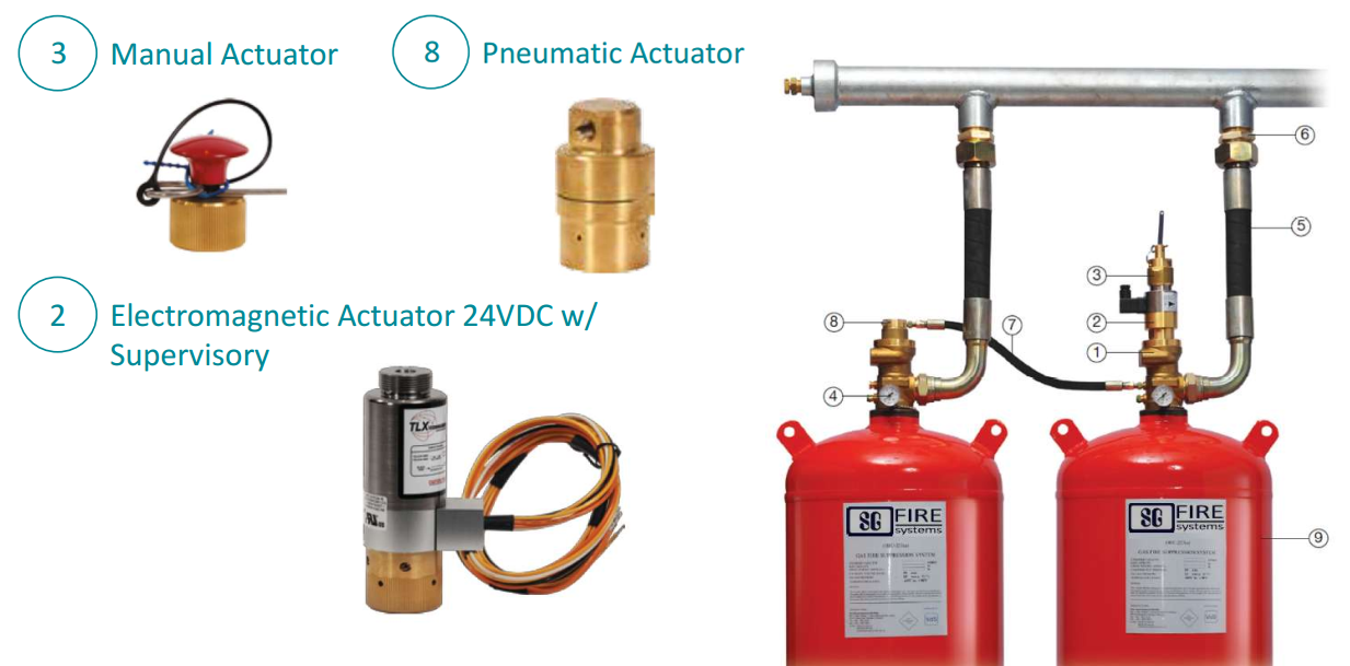 Van kích hoạt đầu bình (Actuator for Cylinder Valve) là cơ cấu truyền động dùng để kích hoạt van xả khí của bình chữa cháy FM200 trong hệ thống SG-227EA và SG-FK5112.